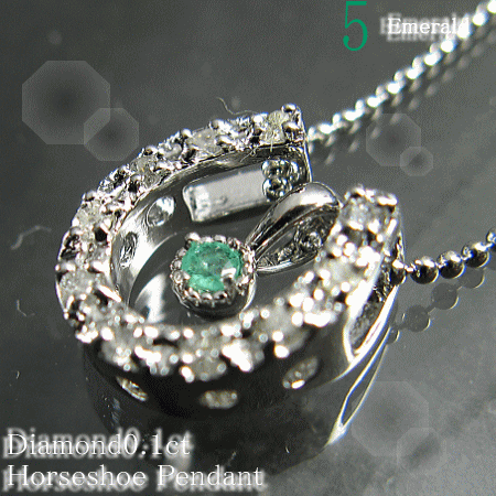 【5月の誕生石】宝石言葉…幸運・幸福!5月誕生石エメラルド×天然ダイヤ0.1t 馬蹄ペンダント シルバー925(プラチナコーティング) ケース&保証カード付き!送料無料 P26apr10 新規店 10